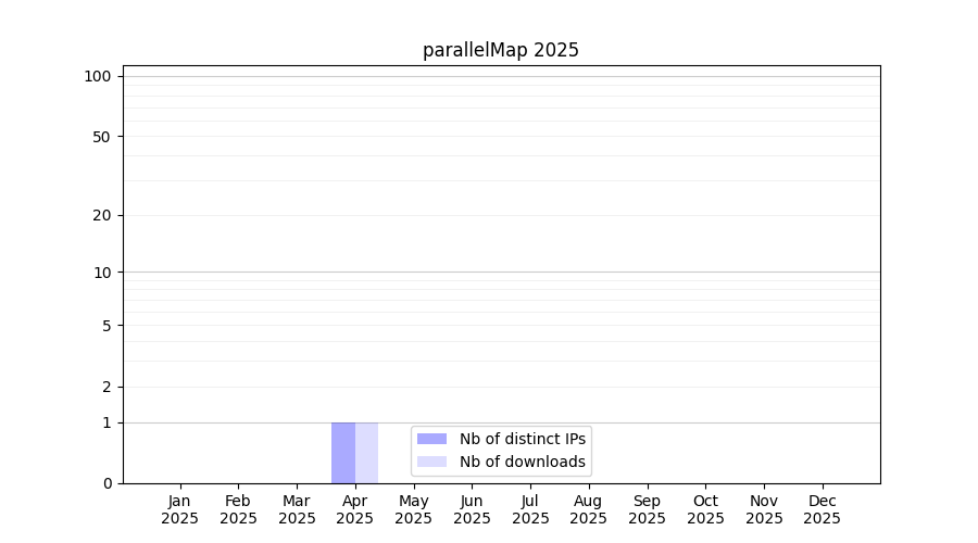 Number of downloads for software package parallelMap, year by year, from 2025 back to 2014 (years with no downloads are omitted):