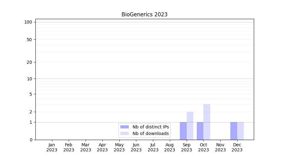 Number of downloads for annotation package BioGenerics, year by year, from 2025 back to 2014 (years with no downloads are omitted):