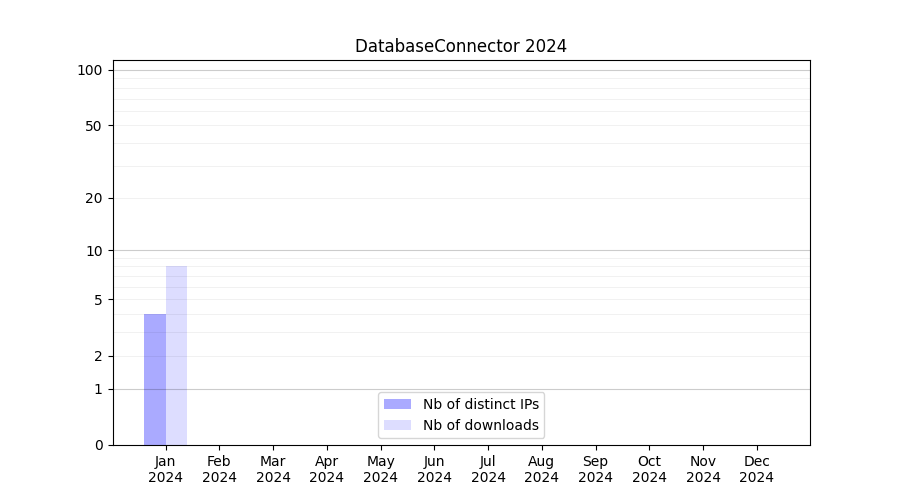 Number of downloads for annotation package DatabaseConnector, year by year, from 2025 back to 2014 (years with no downloads are omitted):
