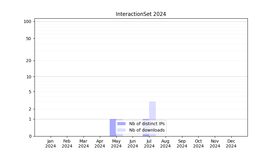 Number of downloads for annotation package InteractionSet, year by year, from 2025 back to 2014 (years with no downloads are omitted):