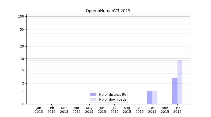 | Month | Nb of distinct IPs | Nb of downloads |