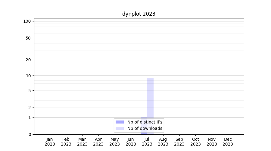Number of downloads for annotation package dynplot, year by year, from 2025 back to 2014 (years with no downloads are omitted):