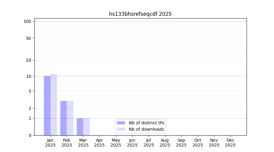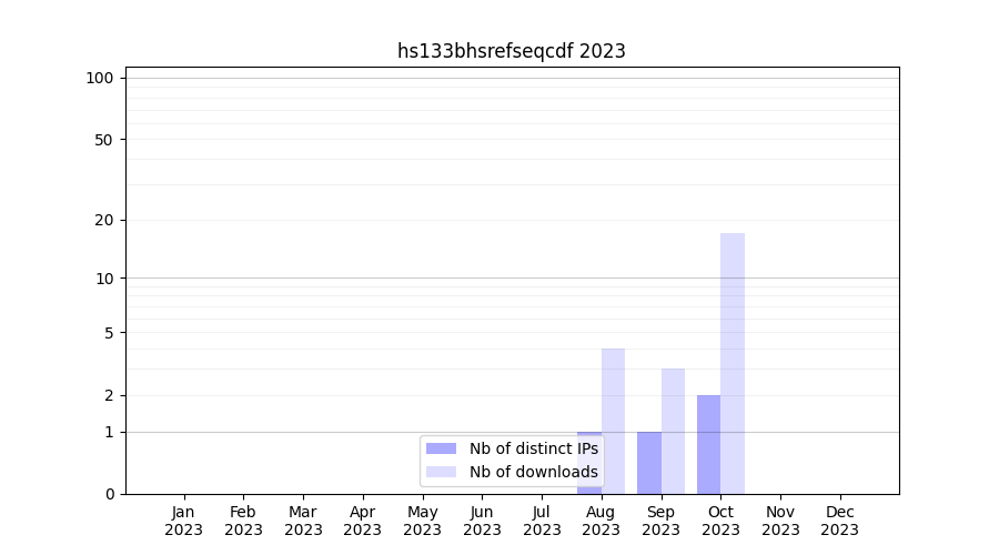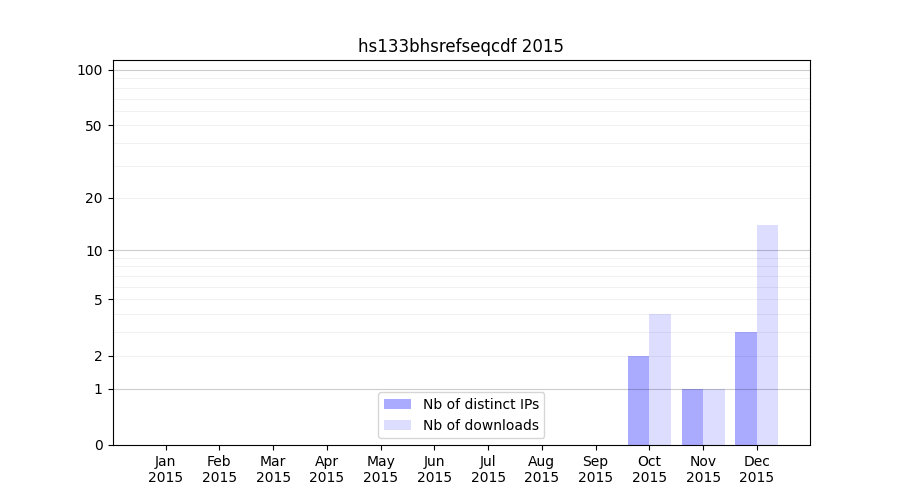 Number of downloads for annotation package hs133bhsrefseqcdf, year by year, from 2025 back to 2014 (years with no downloads are omitted):