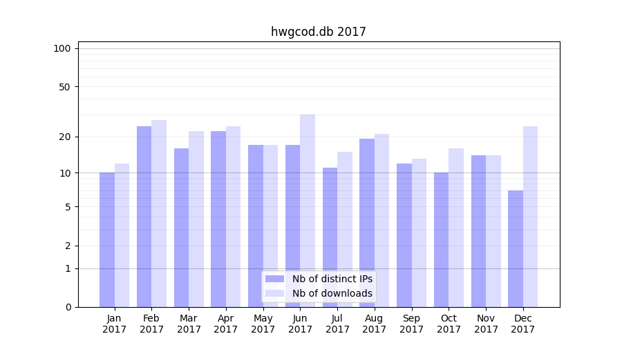 Number of downloads for annotation package hwgcod.db, year by year, from 2025 back to 2014 (years with no downloads are omitted):