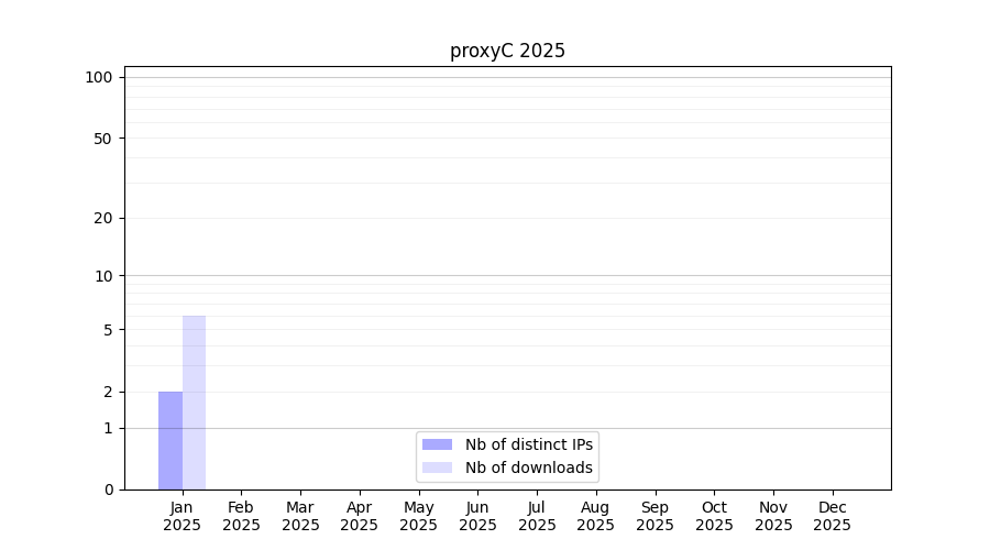 Number of downloads for annotation package proxyC, year by year, from 2025 back to 2014 (years with no downloads are omitted):