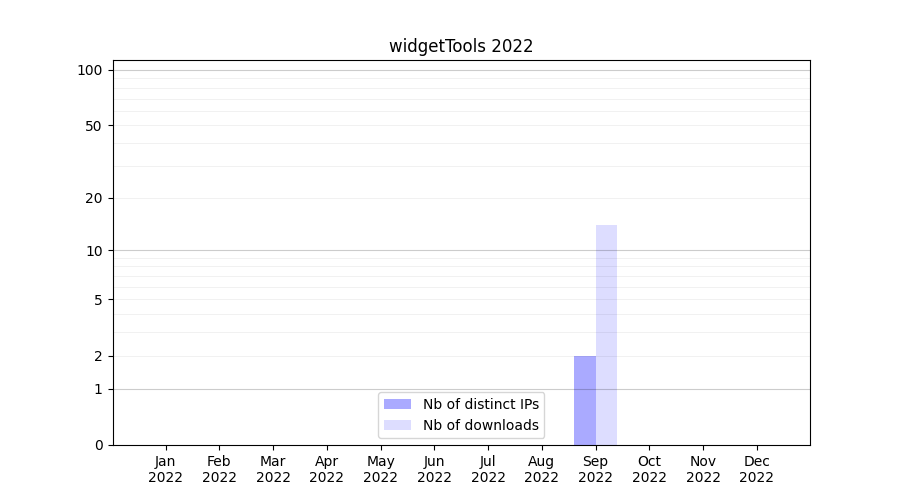 Number of downloads for annotation package widgetTools, year by year, from 2025 back to 2014 (years with no downloads are omitted):