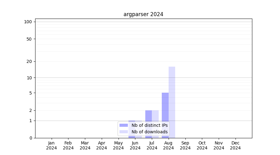 Number of downloads for experiment package argparser, year by year, from 2025 back to 2014 (years with no downloads are omitted):