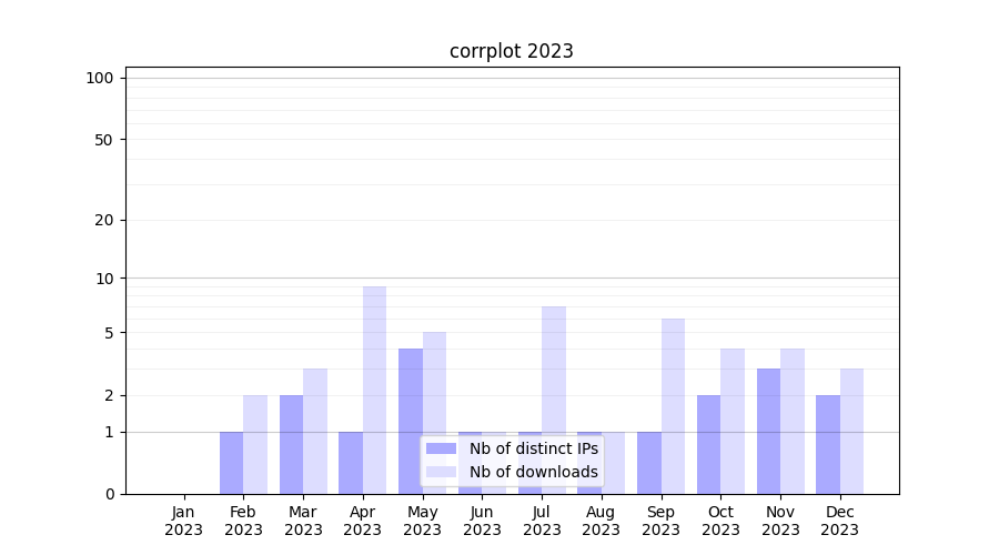 | Month | Nb of distinct IPs | Nb of downloads |