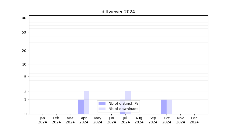 Number of downloads for experiment package diffviewer, year by year, from 2025 back to 2014 (years with no downloads are omitted):