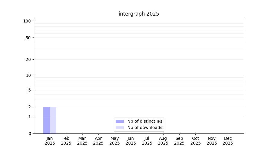 Number of downloads for experiment package intergraph, year by year, from 2025 back to 2014 (years with no downloads are omitted):