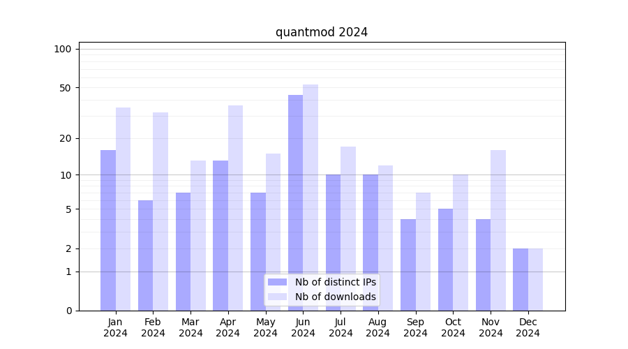| Month | Nb of distinct IPs | Nb of downloads |