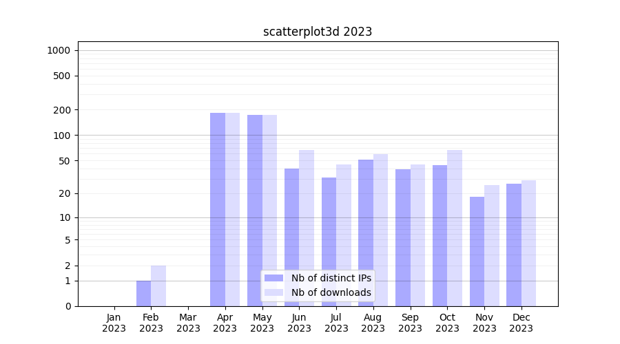 | Month | Nb of distinct IPs | Nb of downloads |