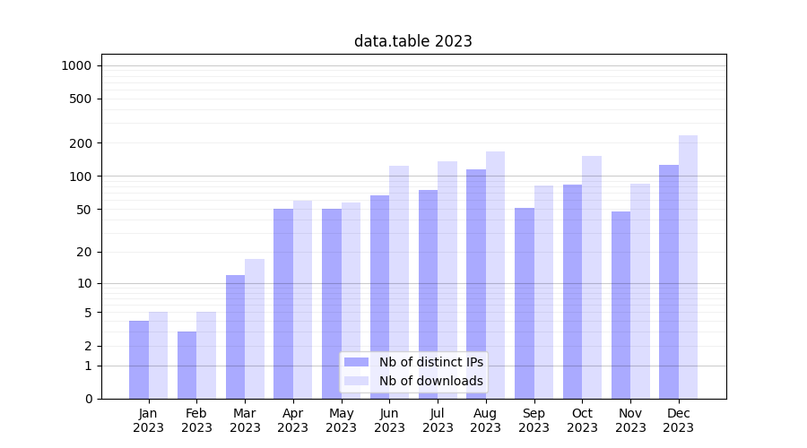 | Month | Nb of distinct IPs | Nb of downloads |