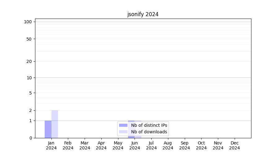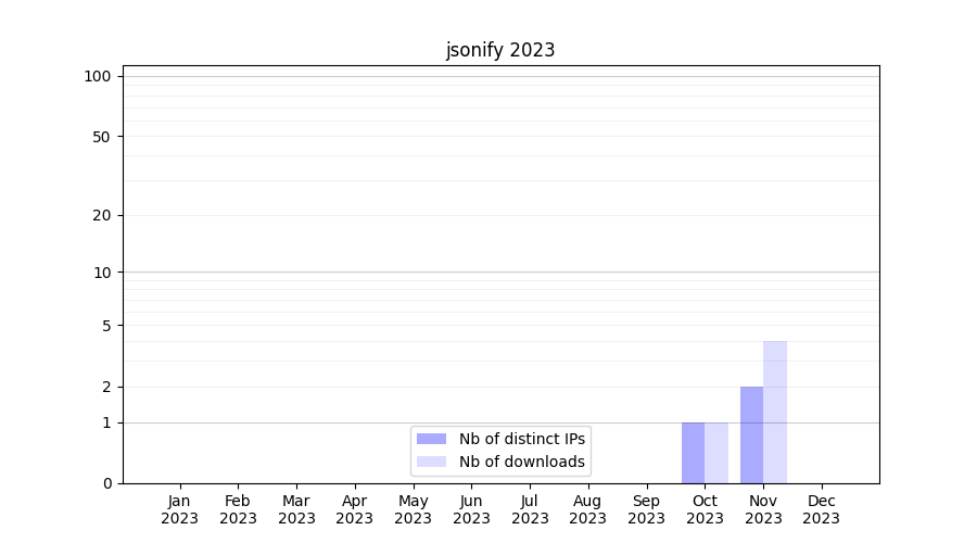 Number of downloads for workflow package jsonify, year by year, from 2025 back to 2015 (years with no downloads are omitted):