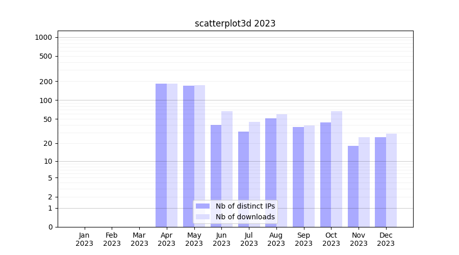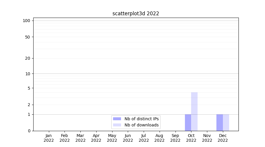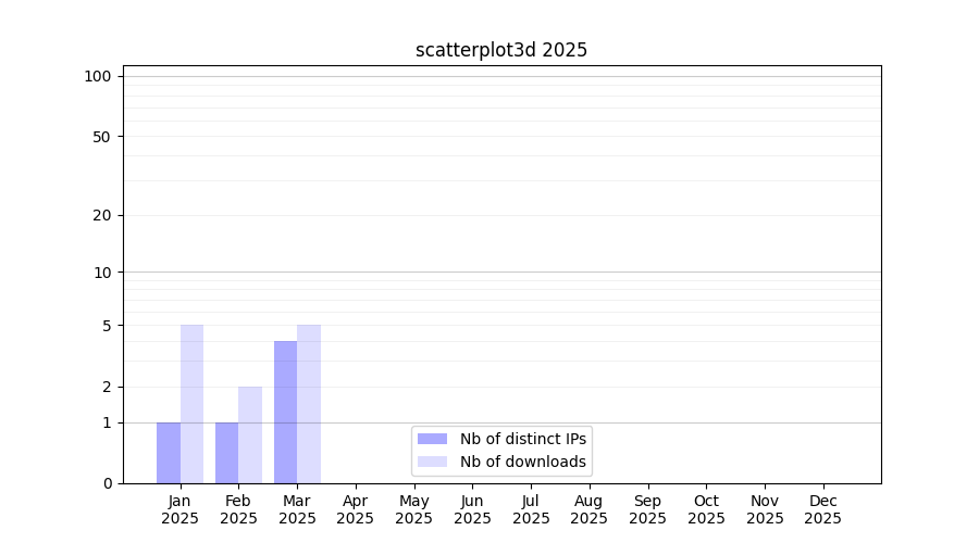Number of downloads for workflow package scatterplot3d, year by year, from 2025 back to 2015 (years with no downloads are omitted):