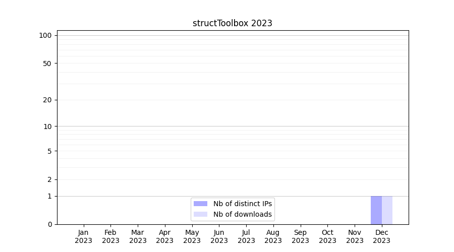Number of downloads for workflow package structToolbox, year by year, from 2025 back to 2015 (years with no downloads are omitted):